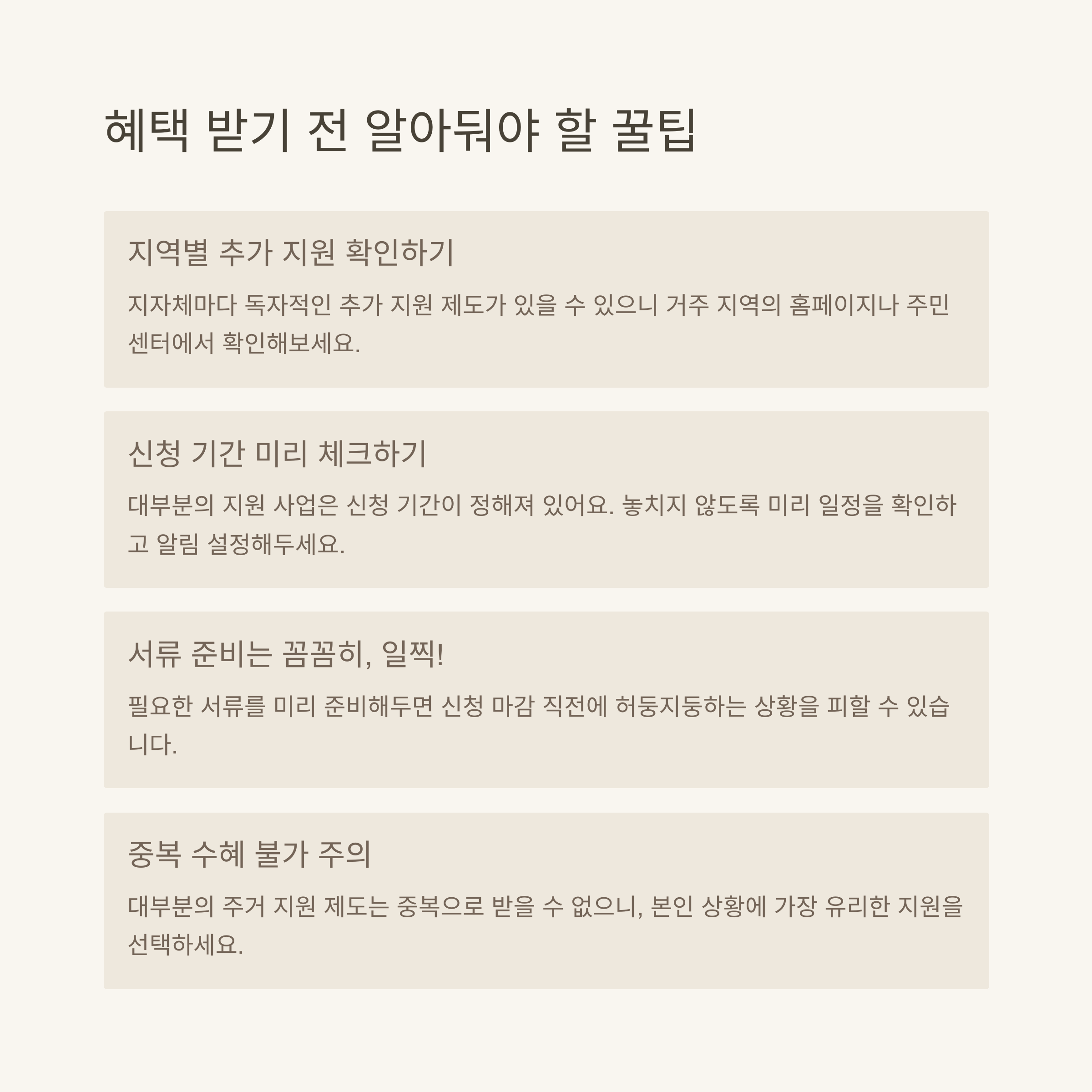 정부나 지방자치단체의 공식 웹사이트에서 본인 조건에 맞는 지원책을 사전에 충분히 확인하는 것이 좋습니다.